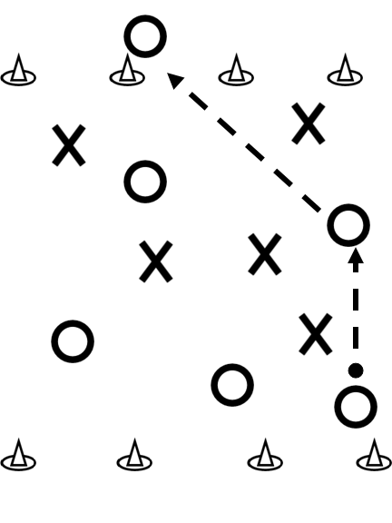 Setup 60yard by 40 yard area with two end zones. Split the rest of